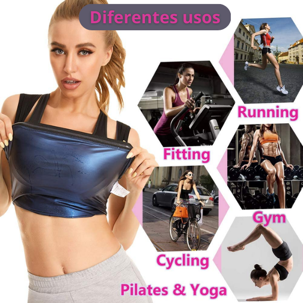 Ayuda a acelerar el proceso térmico del cuerpo para aumentar la sudoración con cualquier tipo de actividad física. Sudas mientras realizas actividades diarias. Además, la sudoración ayuda con la detoxificación y la limpieza de tu cuerpo.