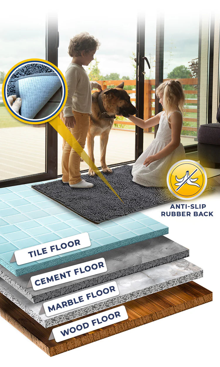 En el baño, debajo de la puerta para perros o en una cama blanda para la perrera, ¡coloque su colchoneta embarrada en cualquier lugar!