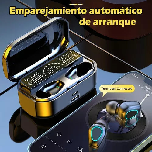 INSTRUCCIONES DE USO: Carga tus Audífonos con su estuche de carga, enciéndelos y conéctalos a tu dispositivo mediante Bluetooth. ¡Así de simple!