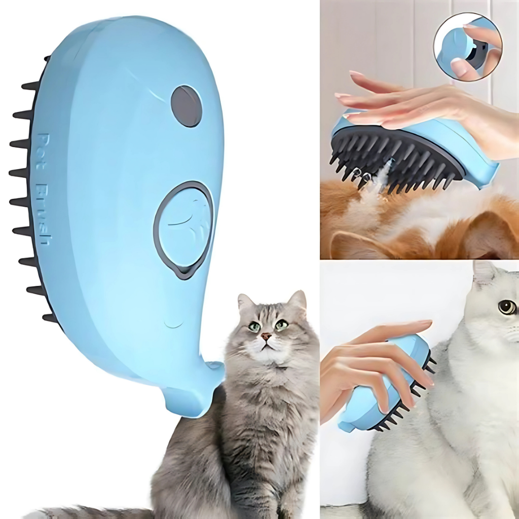 Este cepillo 4 en 1 con tecnología de vapor limpia profundamente, desenreda sin dolor, hidrata el pelaje y masajea suavemente la piel, todo en un solo paso.