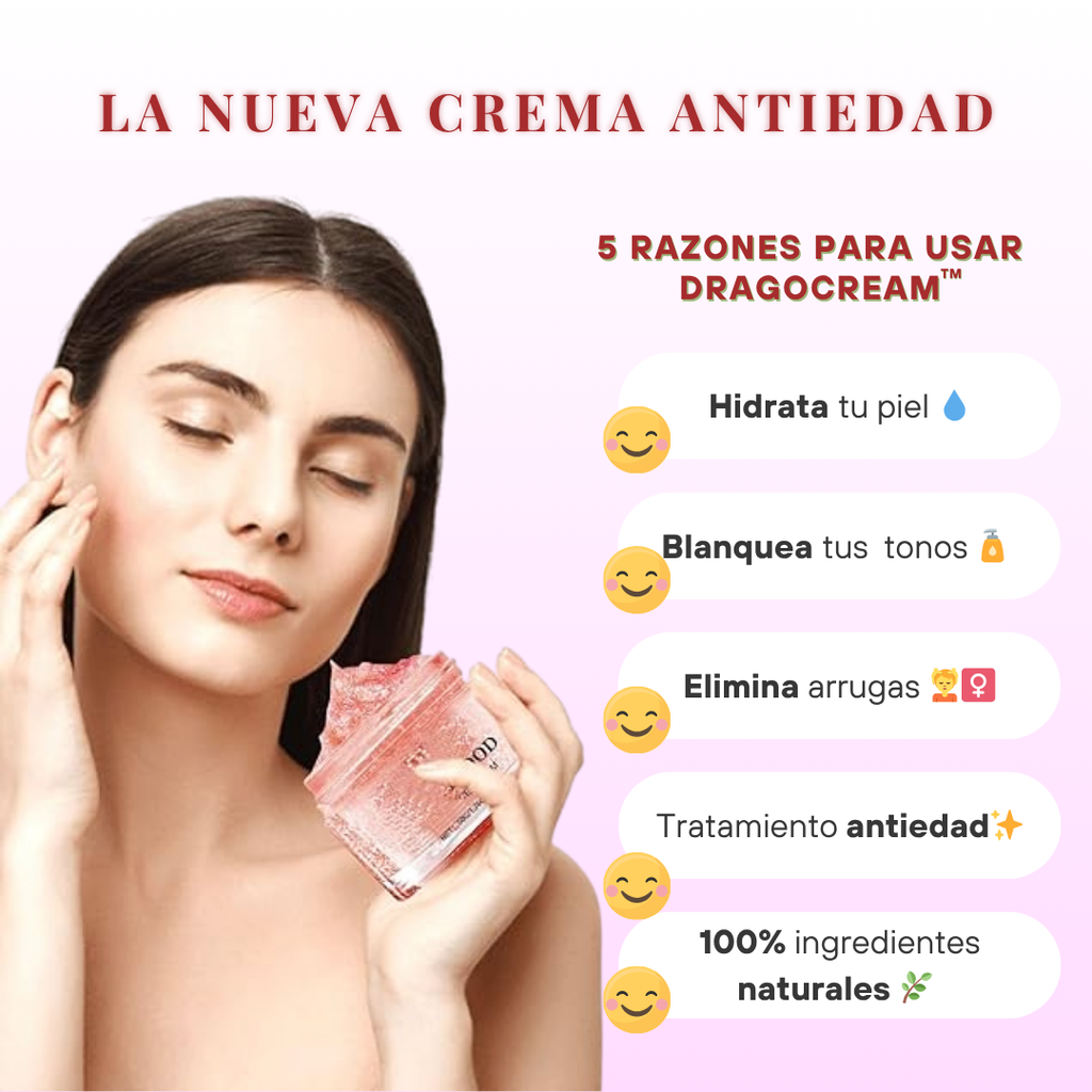 DragoCream™ no es una crema más, es la única cuya tratamiento borra las arrugas y devuelve el colágeno que el tiempo te ha quitado. Y tan solo en 7 días.