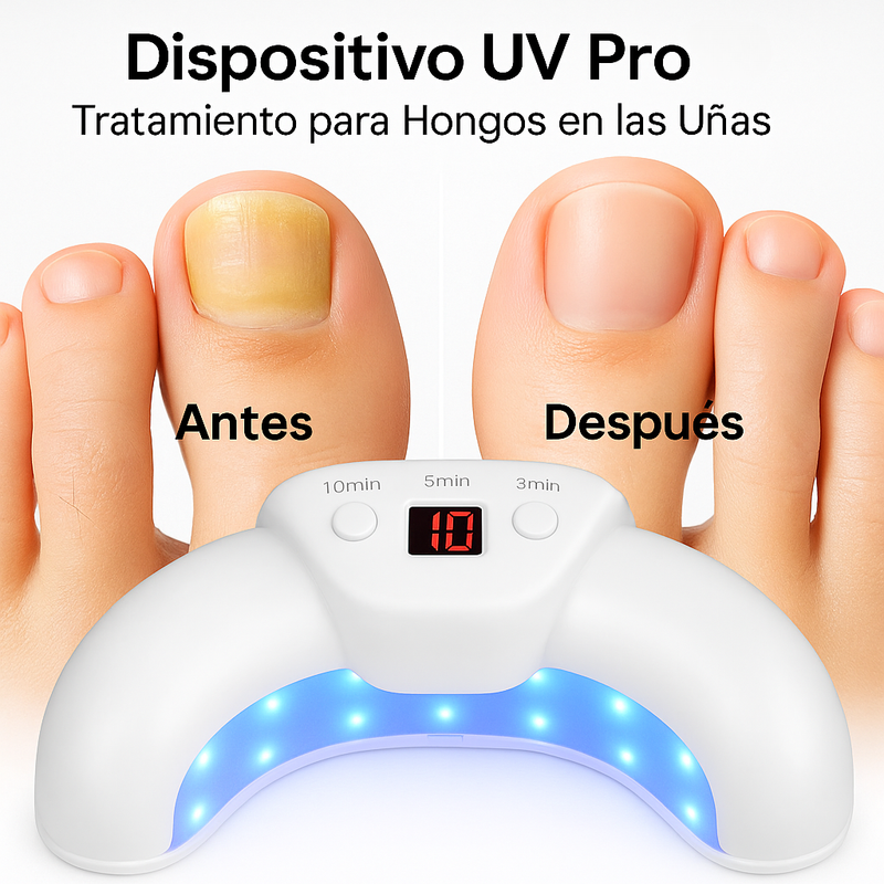 El Dispositivo UV Pro es una solución avanzada diseñada para mejorar el aspecto de las uñas afectadas por decoloración, grosor o daños causados por hongos.