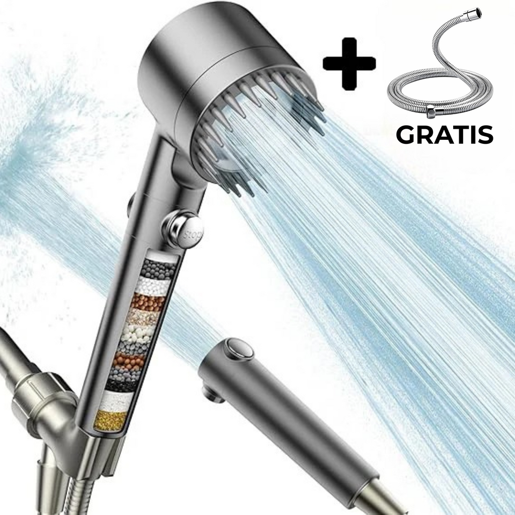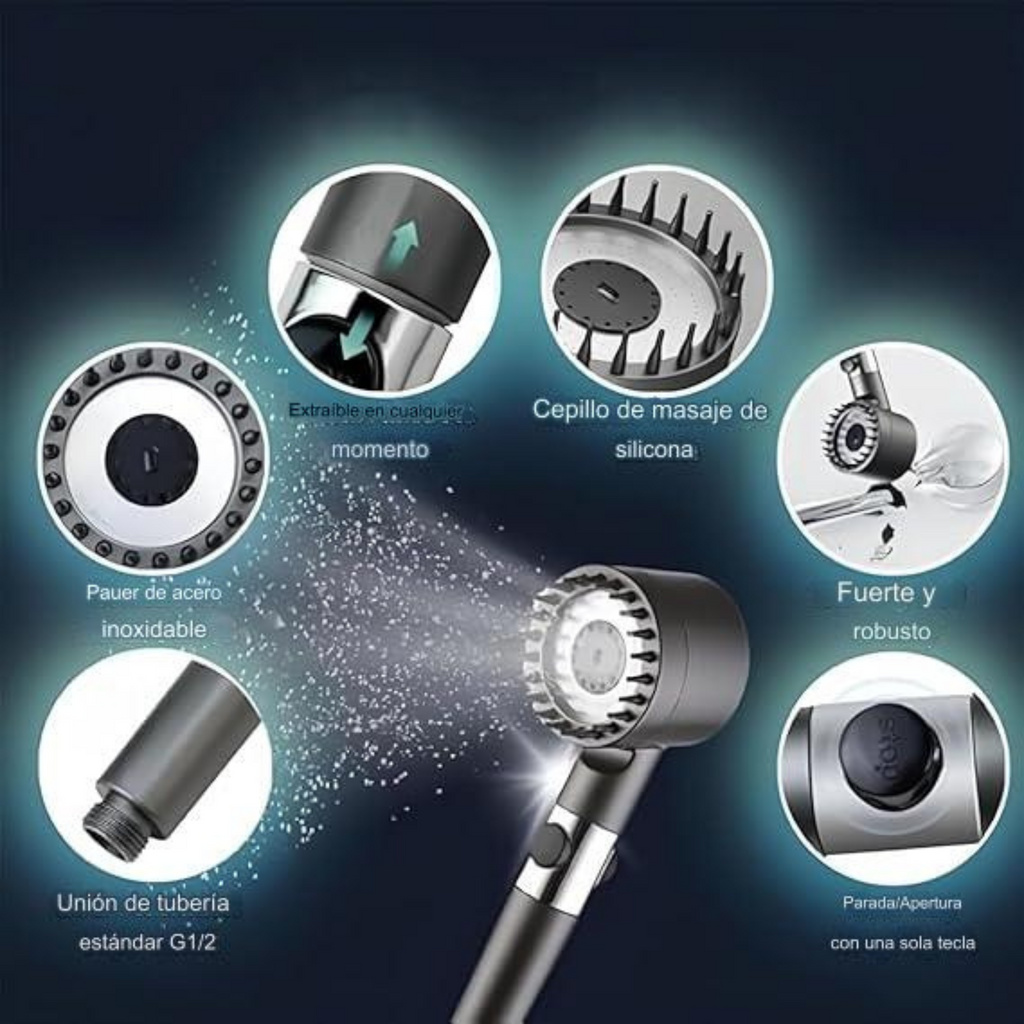 Tiene un sistema de filtrado multicapa que limpia el agua antes de que toque tu cuerpo.