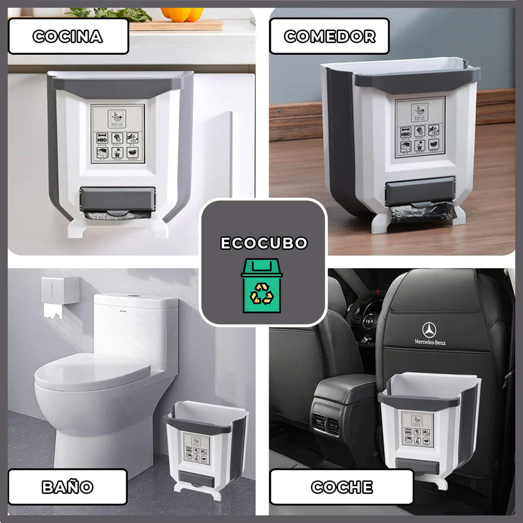 Si no quieres usar tu ECOCUBO lo puedes plegar y guardar en cualquier cajón. Ya que una vez plegado no ocupa nada de espacio. Además, lleva un compartimento de bolsas para que tanto cubo como bolsas estén en un único lugar.