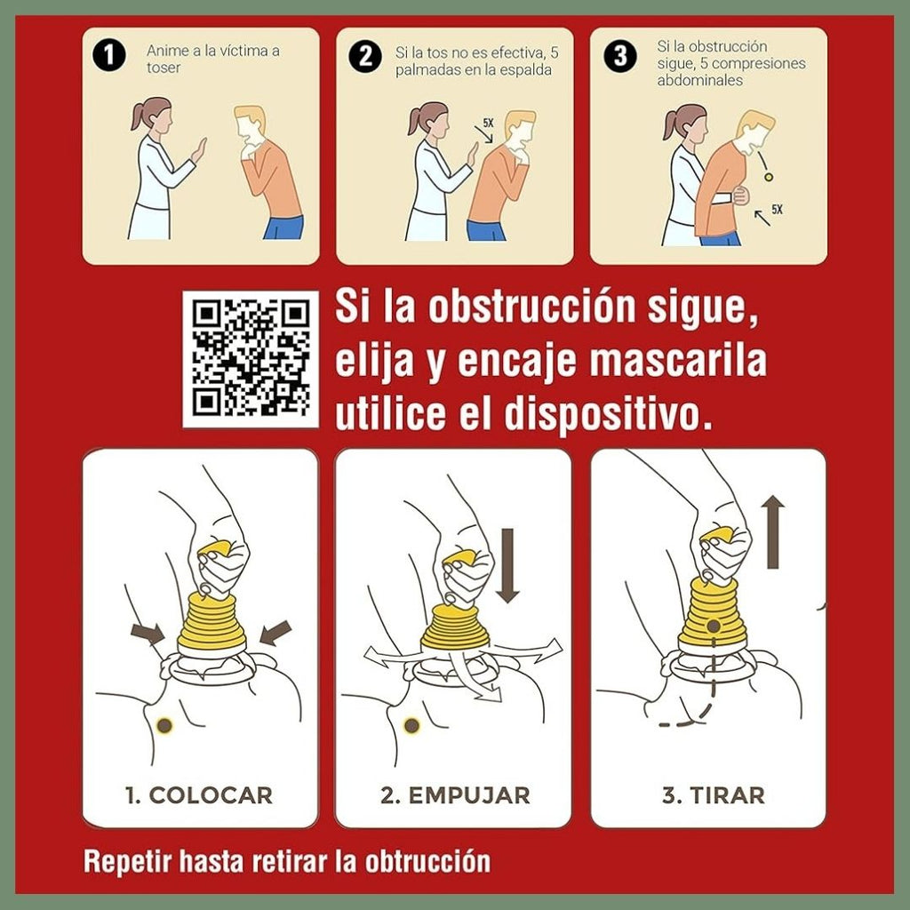 - Incluye: Dispositivo de succión con válvula unidireccional, una máscara para adultos, una máscara pediátrica, una máscara de práctica y un manual de instrucciones sencillo de seguir.