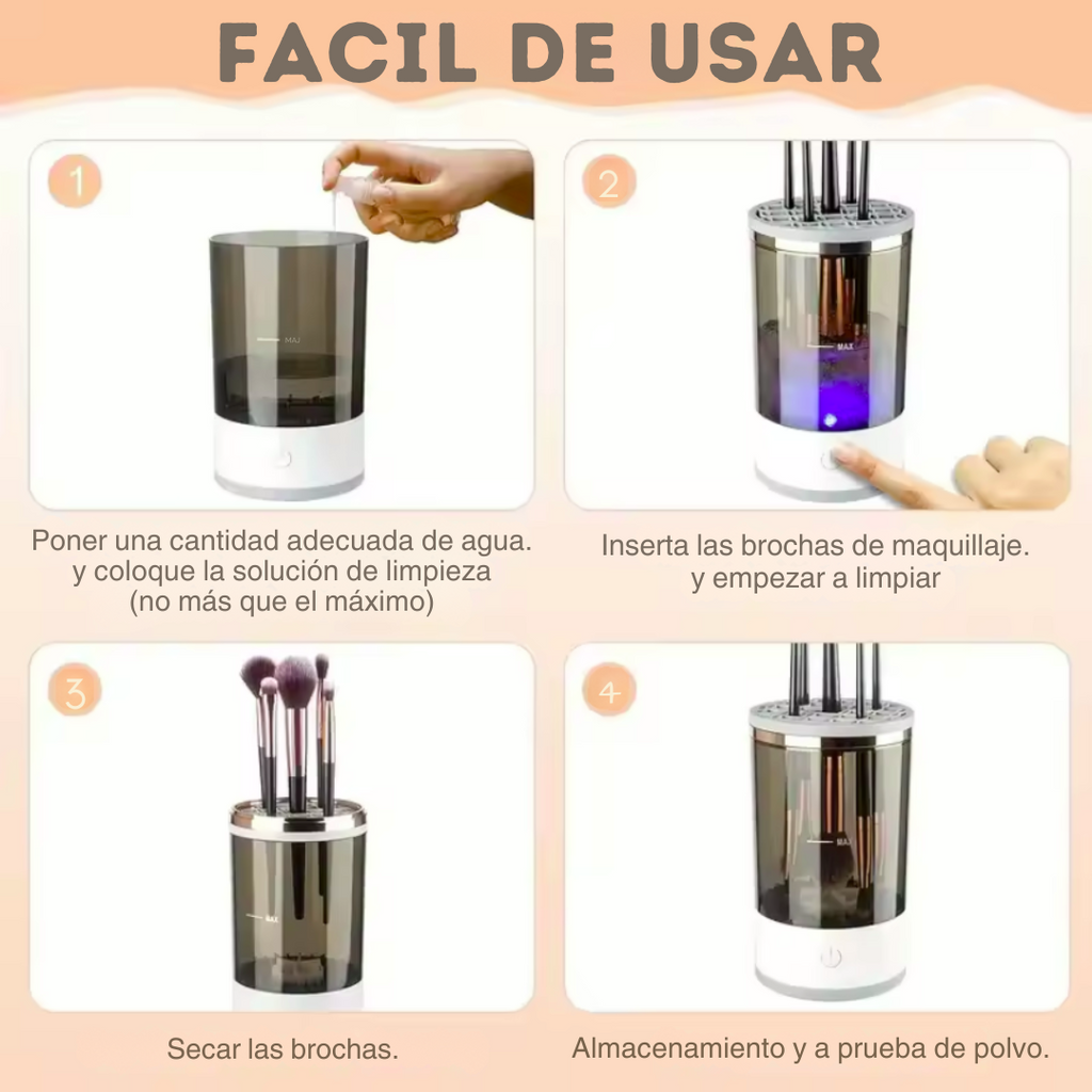 💡 ¡Tenemos la solución! Presentamos el Limpiador Automático de Brochas, el dispositivo que revolucionará tu rutina de maquillaje. En solo segundos, tendrás brochas limpias, higiénicas y listas para usar.