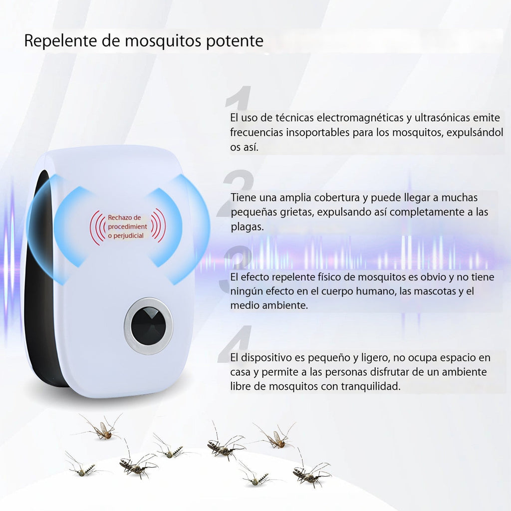 Olvídate de los métodos tradicionales como raquetas, raids, fumigaciones, o repelentes para alejarlos, utiliza tecnología ultrasónica para espantarlos inmediatamente.