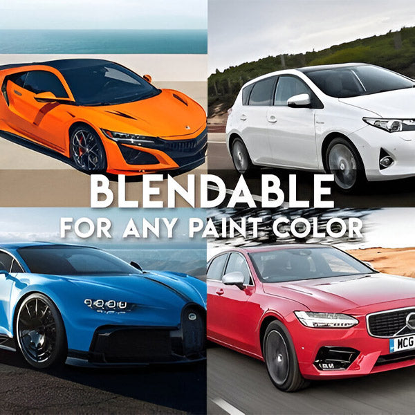 Se puede mezclar con cualquier color de pintura del coche. Funciona en varias superficies incluyendo ruedas, cromo, pintura, metal, plástico, goma, cuero, motor e incluso moqueta.